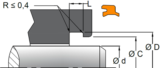 INTERFERÊNCIA (vedação positiva) A interferência é necessária para que o elemento vedante se fixe ao conjunto (alojamento) proporcionando ao lábio interno a flexibilidade necessária para acompanhar pequenas variações provenientes da ação de cargas radiais, oriundas do funcionamento em condições extremas, garantindo uma movimentação suave e precisa (muito indicado, inclusive, para cilindros de haste longa).